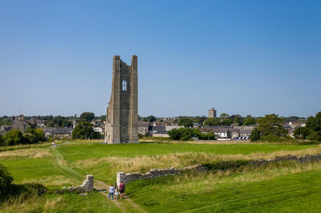 The belltower of St Mary’s Abbey has overlooked the town of Trim since the late 1360s, built after the burning of the original Abbey. It has earned the name of the Yellow Steeple, due to the rich yellow hue it reflects in the sunlight.